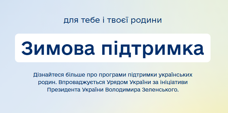 Дізнайтеся більше про програми підтримки українських родин. Впроваджується Урядом України за ініціативи Президента України Володимира Зеленського.
