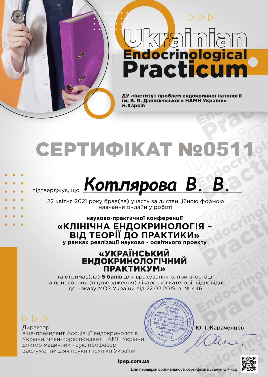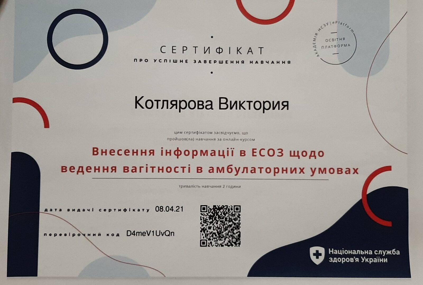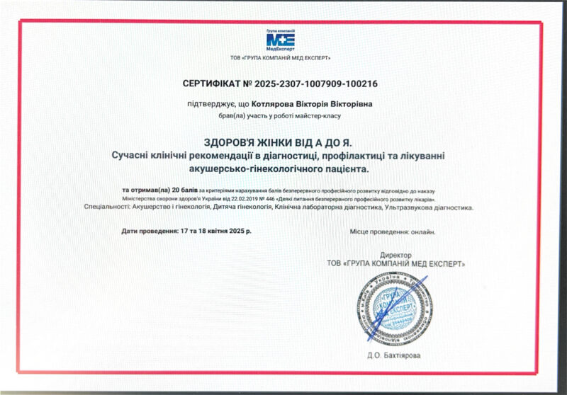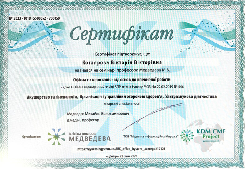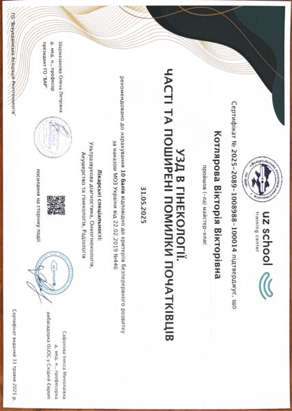 У 2018 р. отримала спеціалізацію “Ультразвукова діагностика”