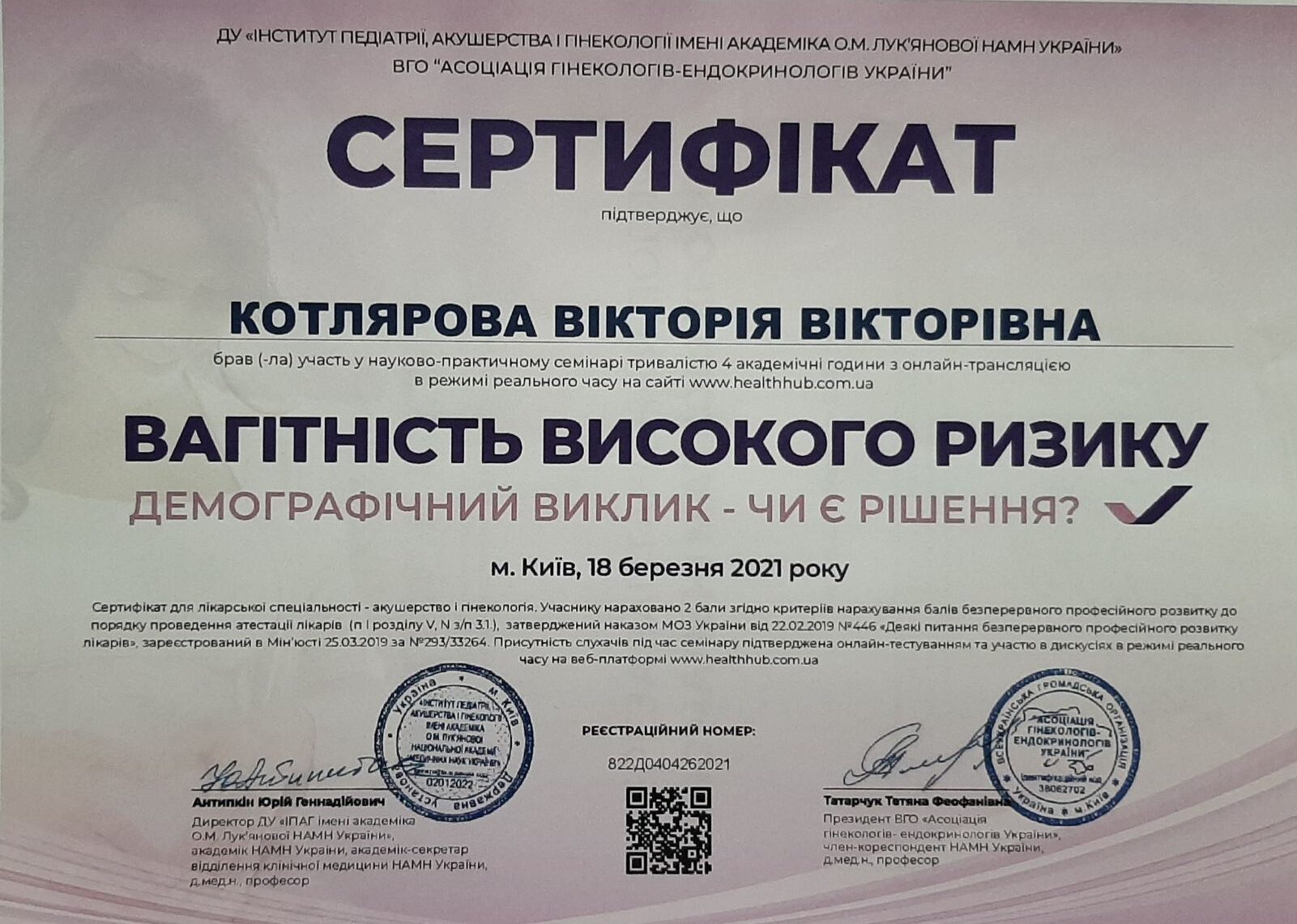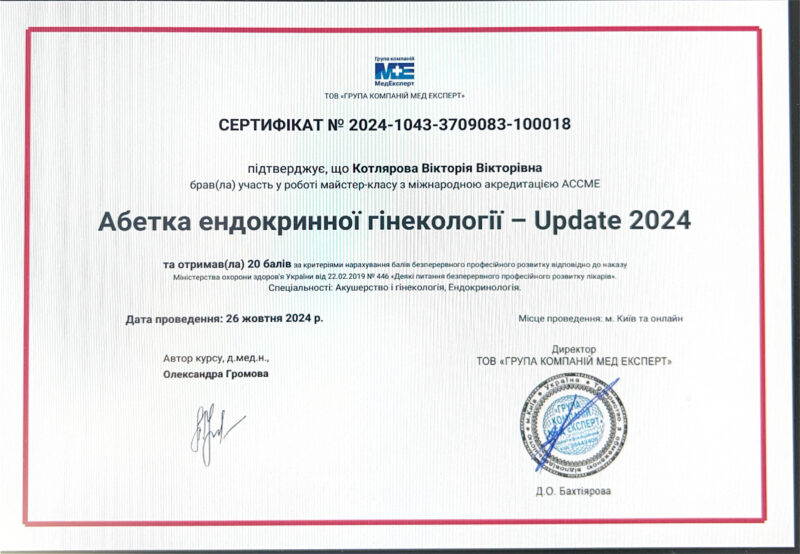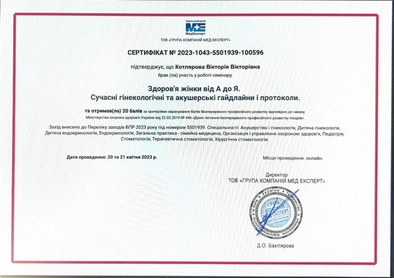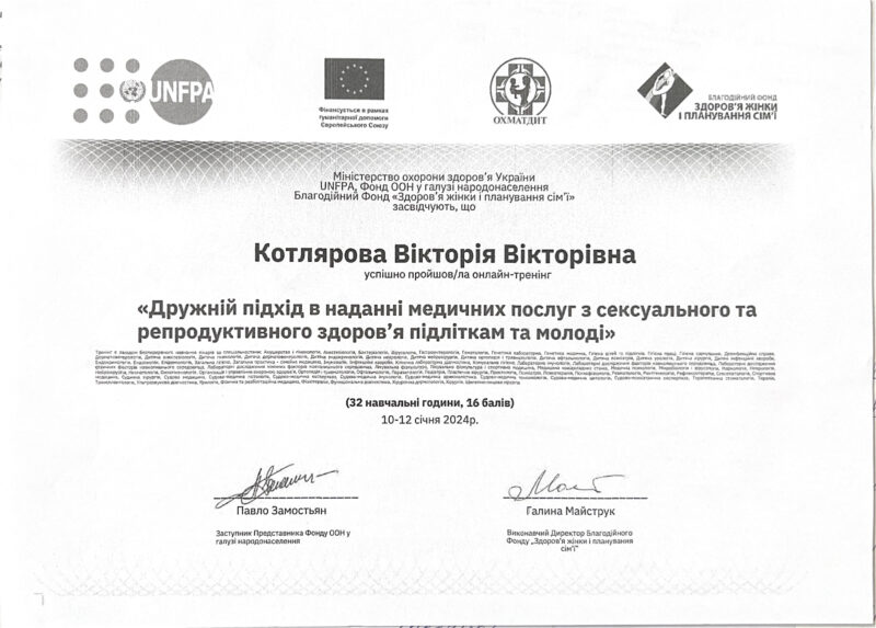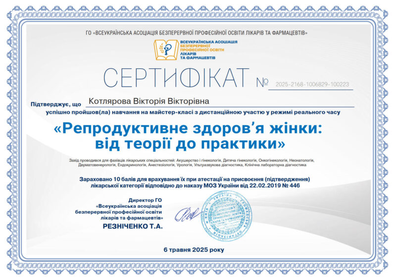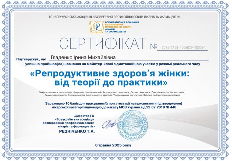 - Член асоціації акушерів-гінекологів України.