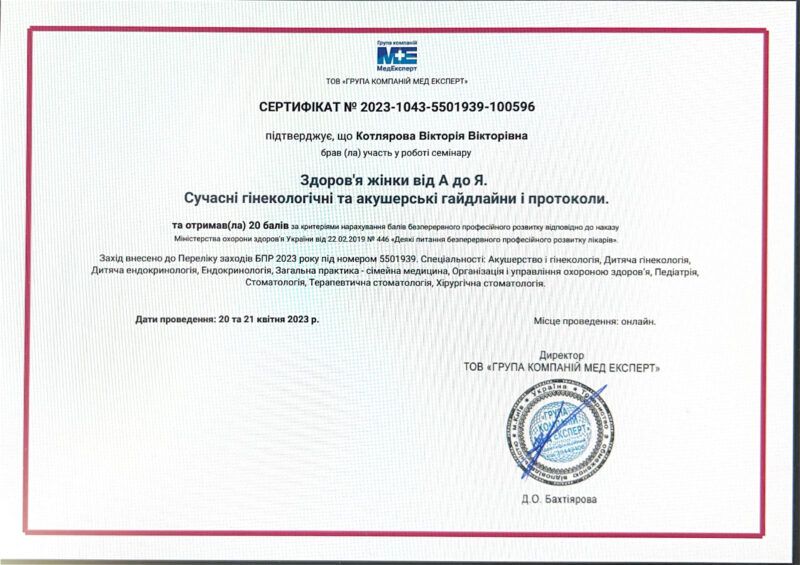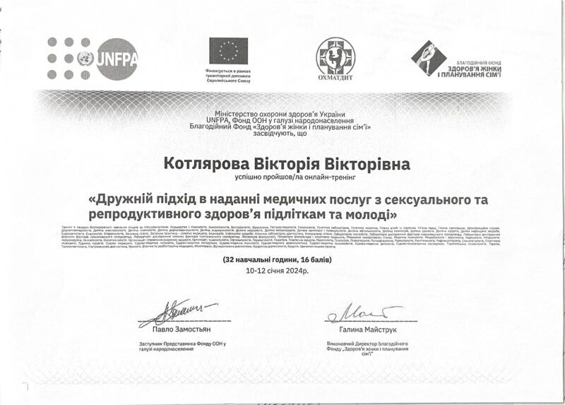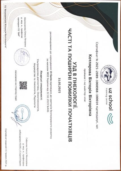 У 2018 р. отримала спеціалізацію “Ультразвукова діагностика”