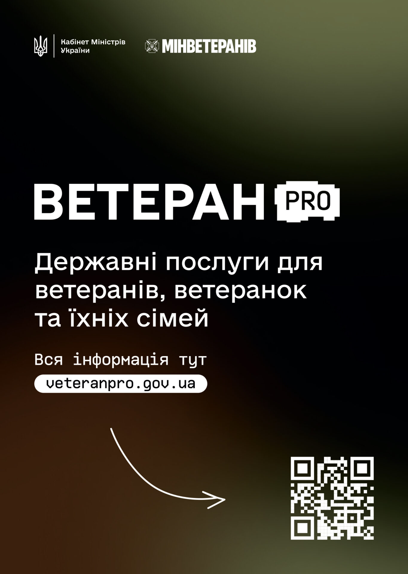 Уряд України на виконання доручення Президента України представив Ветеран PRO – державну цифрову платформу для ветеранів, ветеранок і їхніх родин, де зібрано всю інформацію про пільги, програми, послуги та можливості в одному місці. Проєкт реалізовано Міністерством у справах ветеранів України.