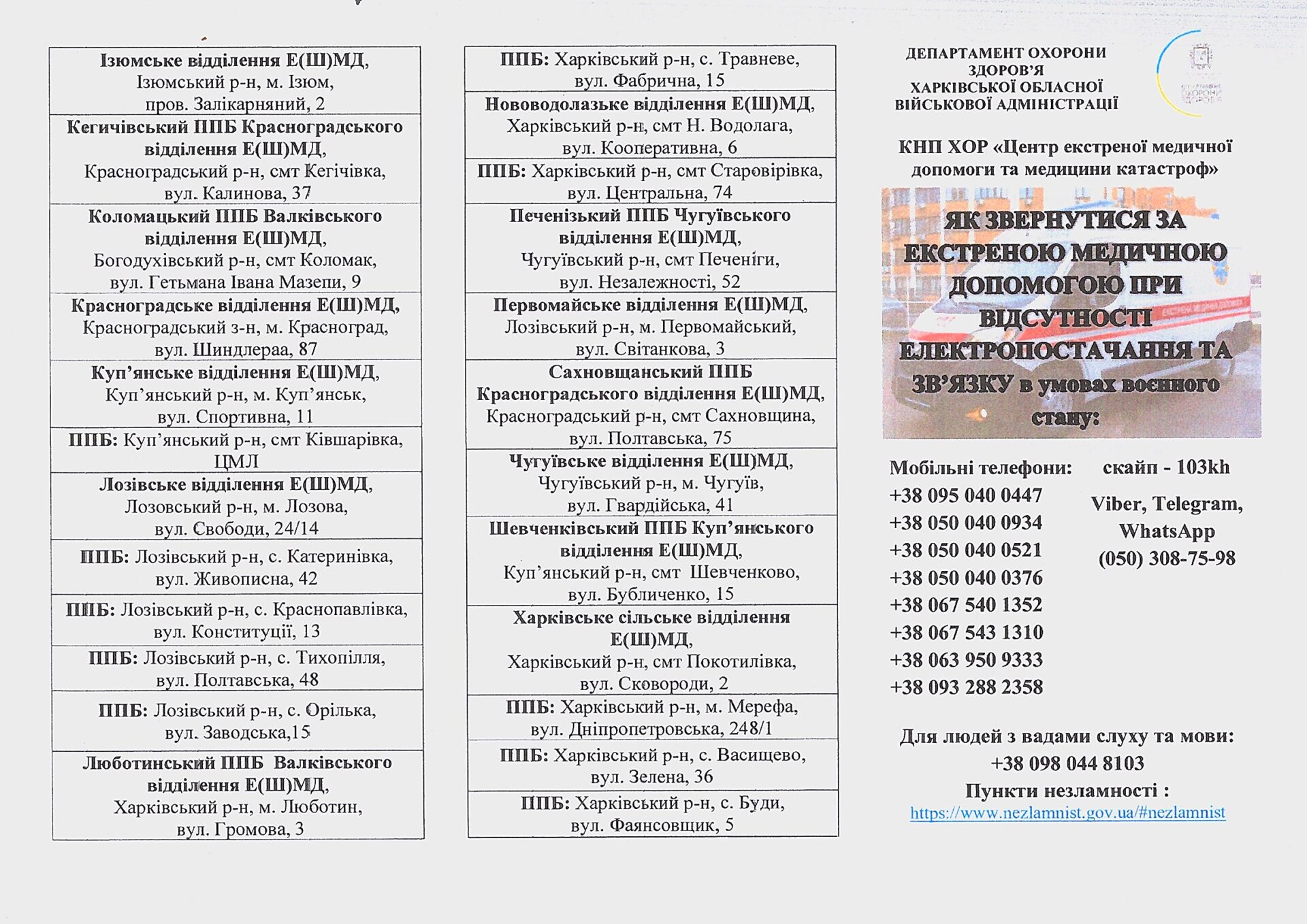 Як звернутись за екстренною медичною допомогою при відсутності електропостачання та зв’язку Дата публікації: 02 Грудня 2022 року. Опубліковано в Анонси, Відділення, Важливо. « Назад Вперед »